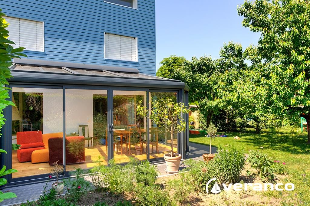 La véranda Emeraude est composée d'une toiture rectangulaire et d'une toiture "à facettes" dans les 2 angles coupés. La véranda Emeraude offre une variante esthétique agréable. Sa toiture ‘à facettes’ contribue à l’originalité de son design. Cette forme adoucie s'intègre harmonieusement à de nombreuses façades. Son architecture et sa construction permettent de réaliser de grandes dimensions de véranda. D'abord séparée de la maison, il est possible de supprimer les baies vitrées pour que la véranda et la maison ne fasse plus qu'une seule et même pièce.
